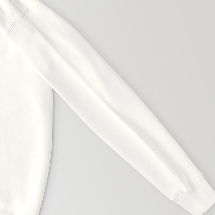 前面にポケットが付かないシンプルなデザインで、しっかりとした生地厚のパーカーです。