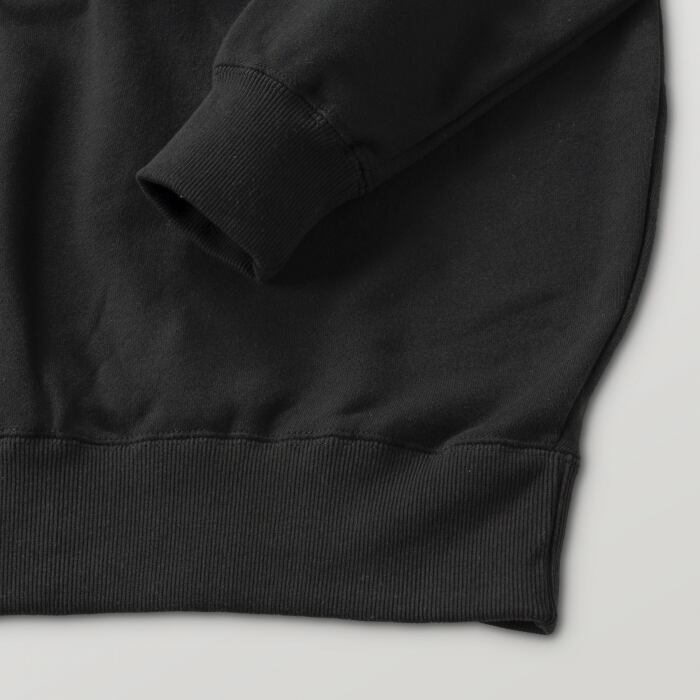 前面にポケットが付かないシンプルなデザインで、しっかりとした生地厚のパーカーです。