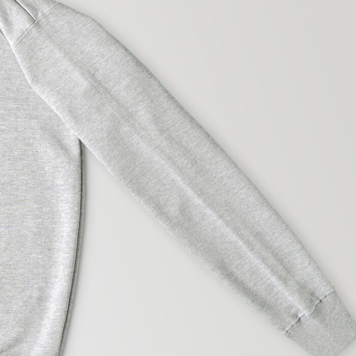 前面にポケットが付かないシンプルなデザインで、しっかりとした生地厚のパーカーです。